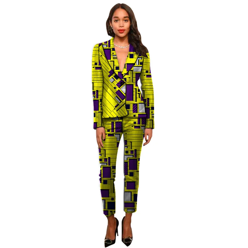 | Street style pant suits for ladies blazers with trousers female African set custom made Ankara print womens outfits |